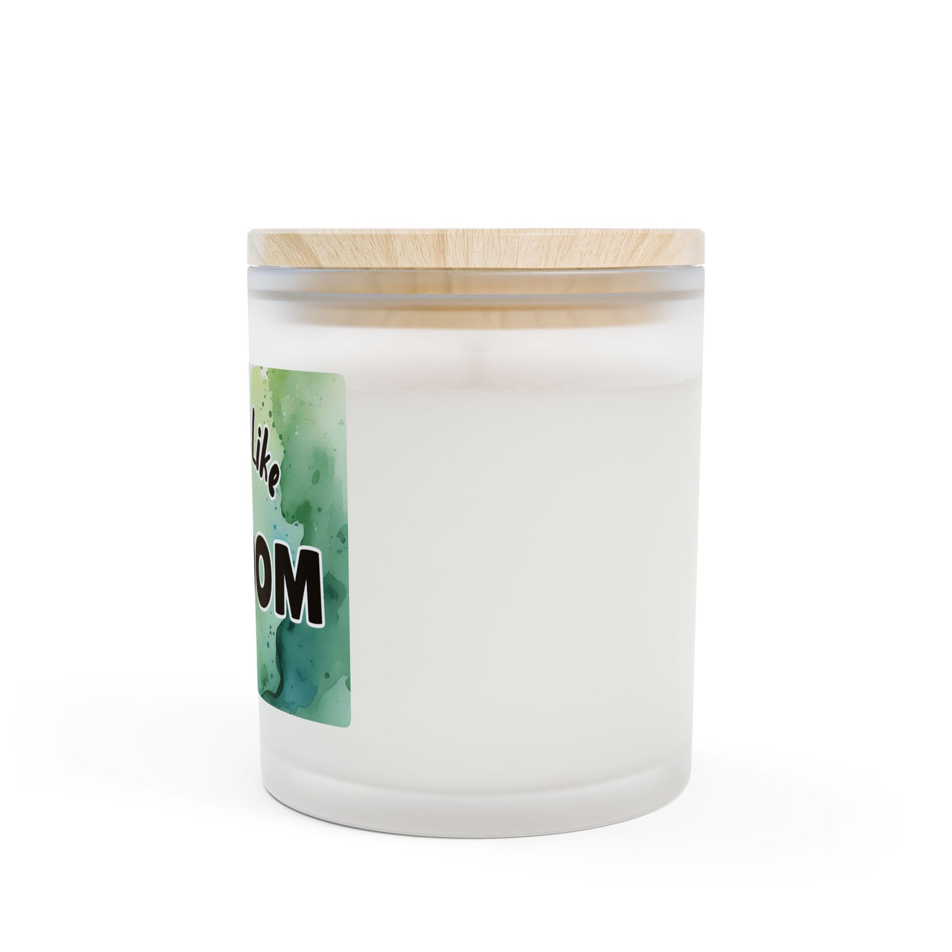 *11oz candle in a frosted glass vessel with raw maple lid